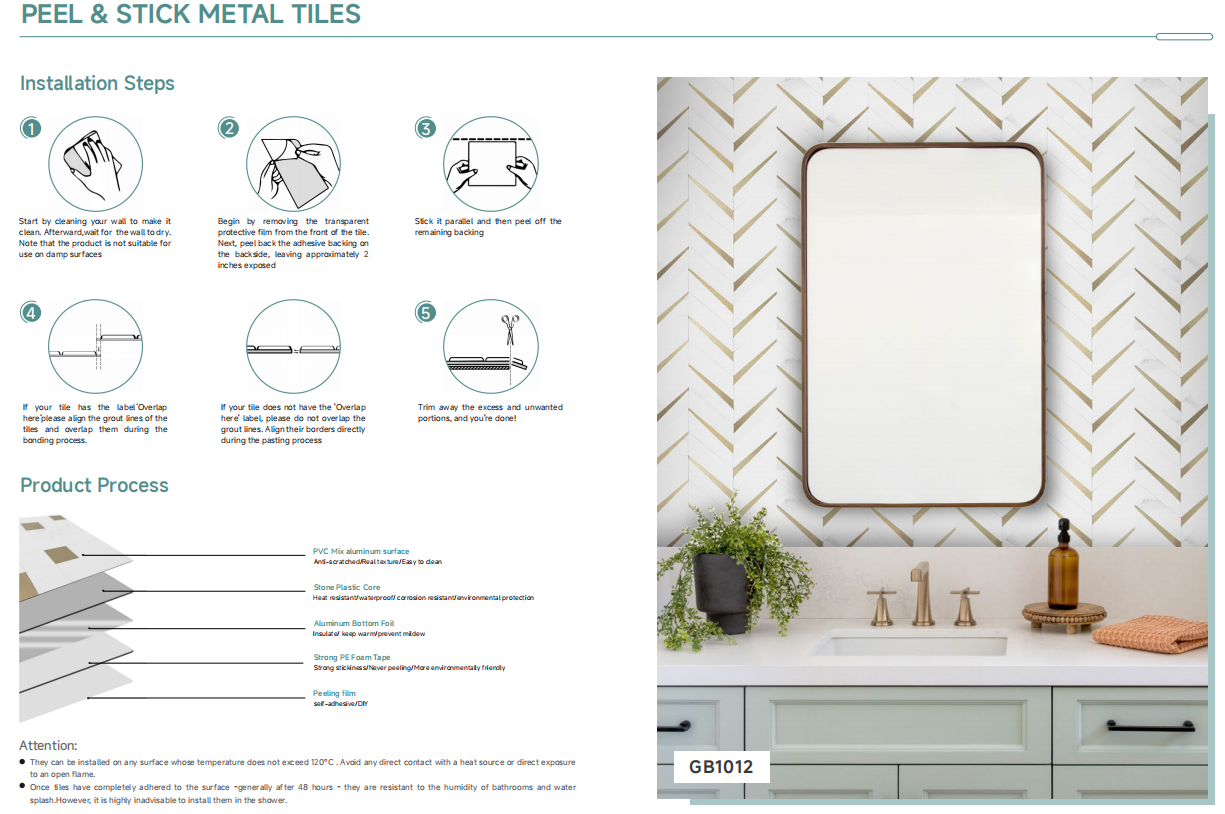 Top Pick | Peel and Stick Metal Tiles | PVC | Industrial Style | Brushed Gray | Sound Dampening | Office Wall | Removable Metal Tile | 30.5cm x 30.5cm | OEM | akadeco abstractpeelstickwallpaper.com