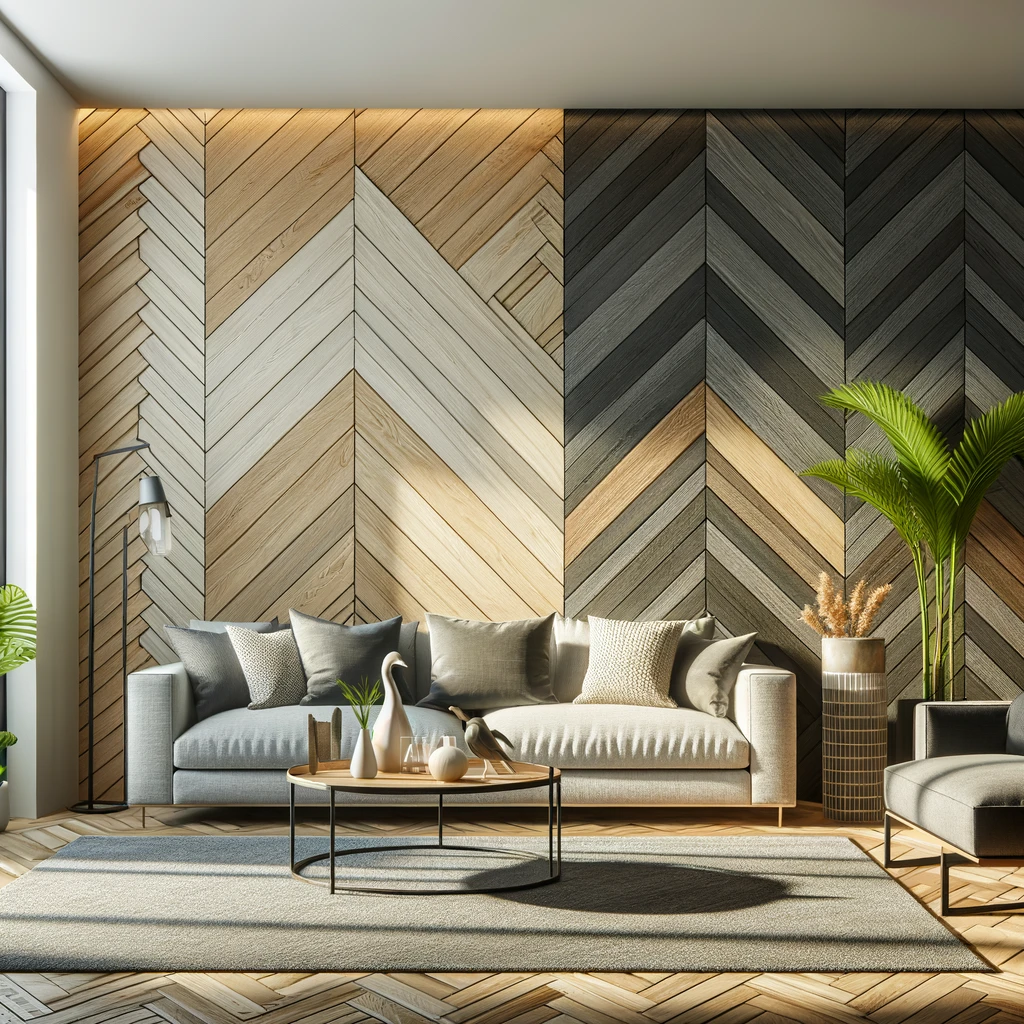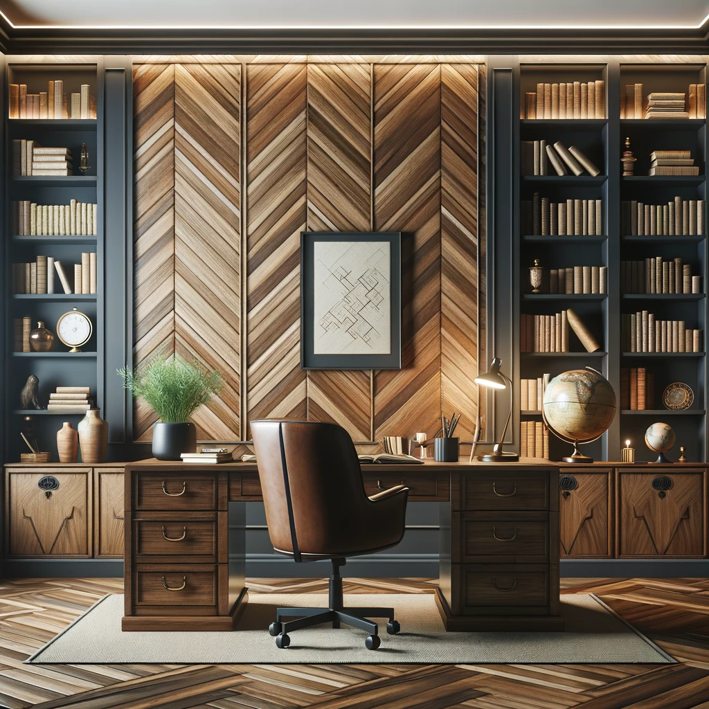 he wallpaper pattern depicted is a classic herringbone design, characterized by its arrangement of rectangular pieces of wood in a zigzag pattern. The use of light and dark wood tones adds depth and texture to the design, creating a sense of warmth and natural elegance. This type of pattern is versatile and timeless, often associated with refinement and sophistication.