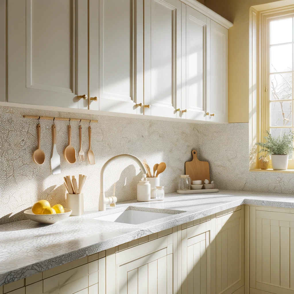 White terrazzo contact paper is an excellent choice for covering countertops. Terrazzo, with its flecks of color embedded in a white base, adds interest and depth while maintaining the clean, bright feel that is essential to Nordic interiors. This durable and easy-to-clean surface is ideal for kitchens and bathrooms, where practicality meets style.