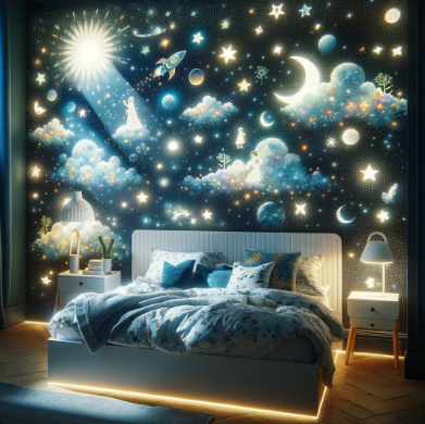 #SeamlessIntegration: Wallpaper that seamlessly blends with smart home technology, featuring designs that can change with a user's mood or the time of day.