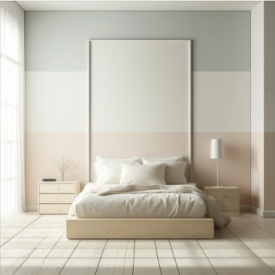 Self-adhesive wallpaper is the perfect complement to minimalist bedroom designs, where the emphasis is on simplicity and clean lines. A light pastel palette not only brightens the room but also creates a subtle backdrop that enhances the furniture and overall ambiance of the space.