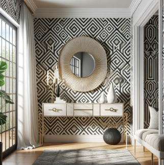 Self-adhesive wallpaper, particularly designs with bold, geometric patterns, can transform a mundane entryway into an elegant foyer. The striking design not only elevates the space but also serves as a dramatic backdrop for other decor elements like modern console tables, decorative mirrors, and chic accessories.