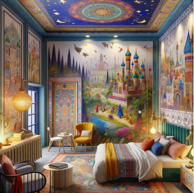 The vivid illustrations of castles, enchanted forests, and mythical creatures that adorn the wallpaper encourage children to explore their creativity and immerse themselves in their dreams, making the bedroom a wonderland of possibilities.