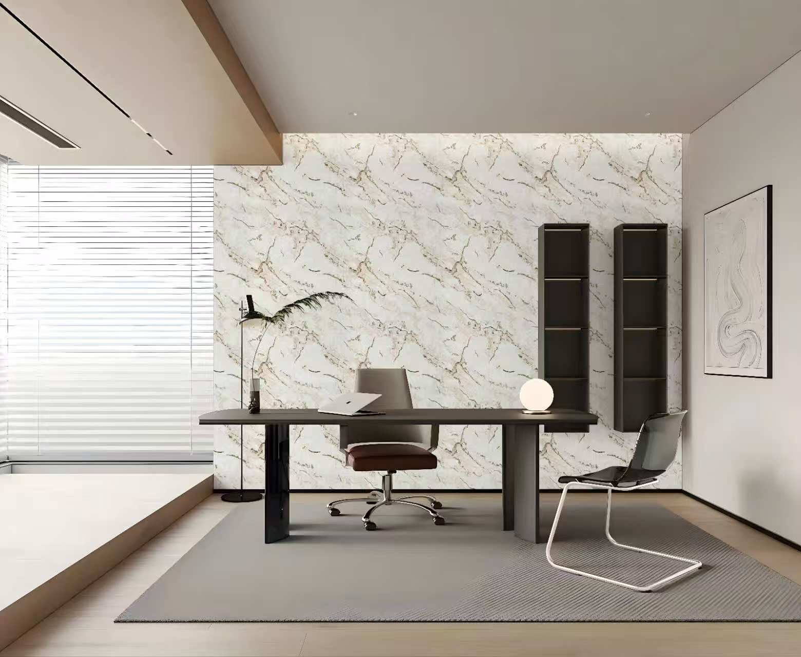 Bright and smooth surface with realistic marble texture creates a premium space effortlessly.