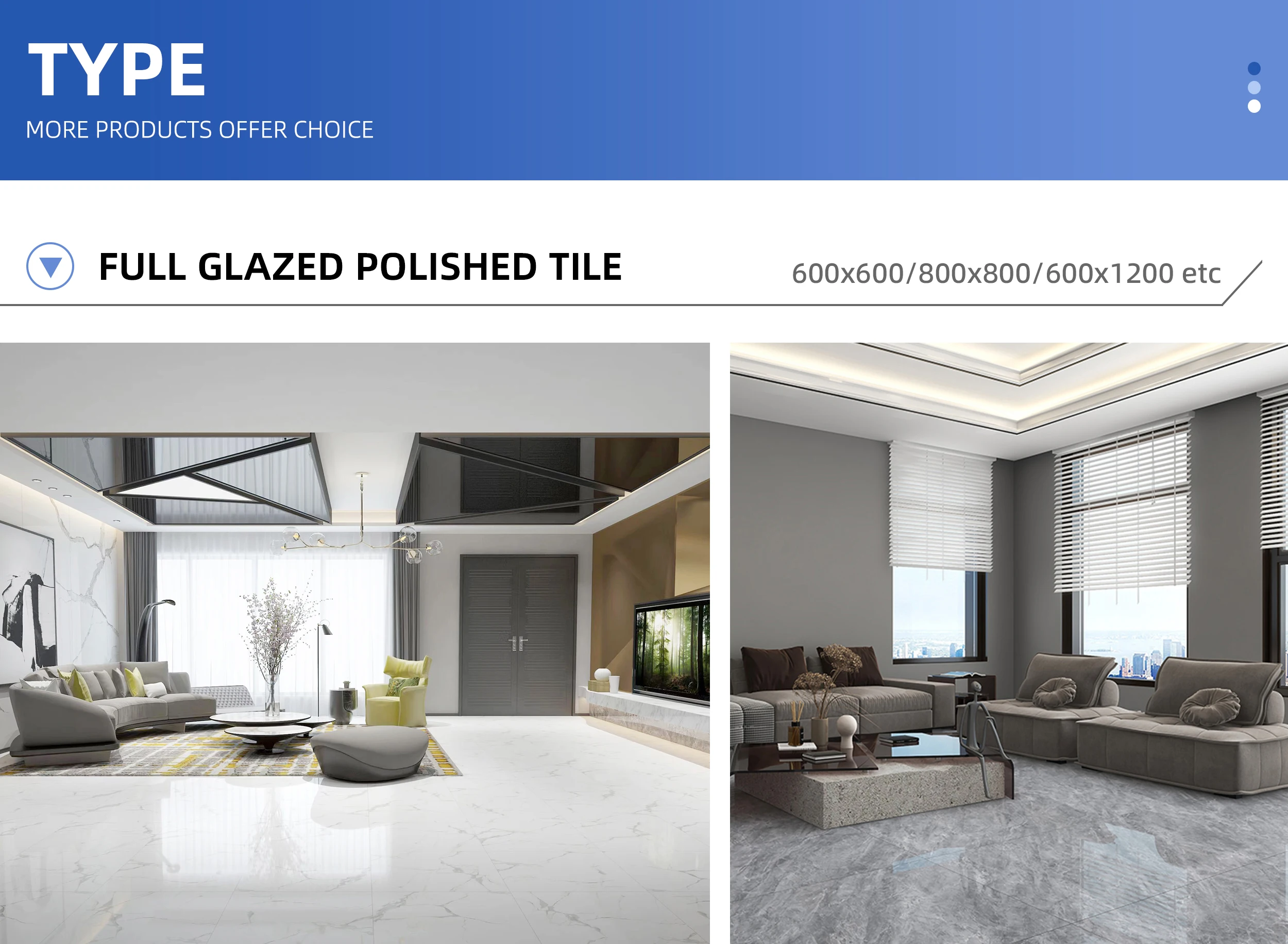 2. We can provide you with a variety of ceramic wall tiles, ceramic floor tiles, fully polished glazed tiles, polished tiles, antique tiles, marble tiles and mosaic tiles, etc. 3. Years of export experience, products are exported to all parts of the world, understand your market needs, and make the procurement process smoother.